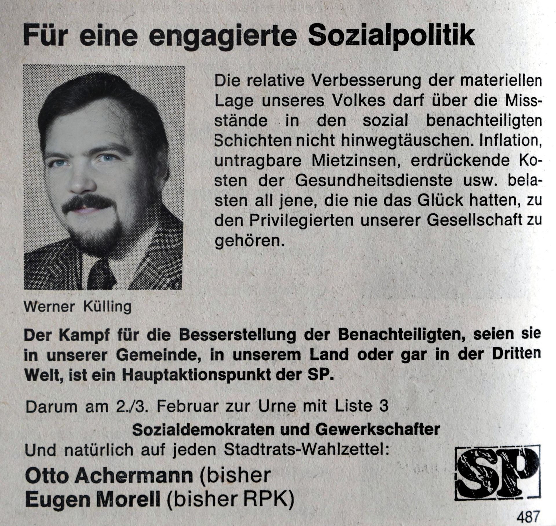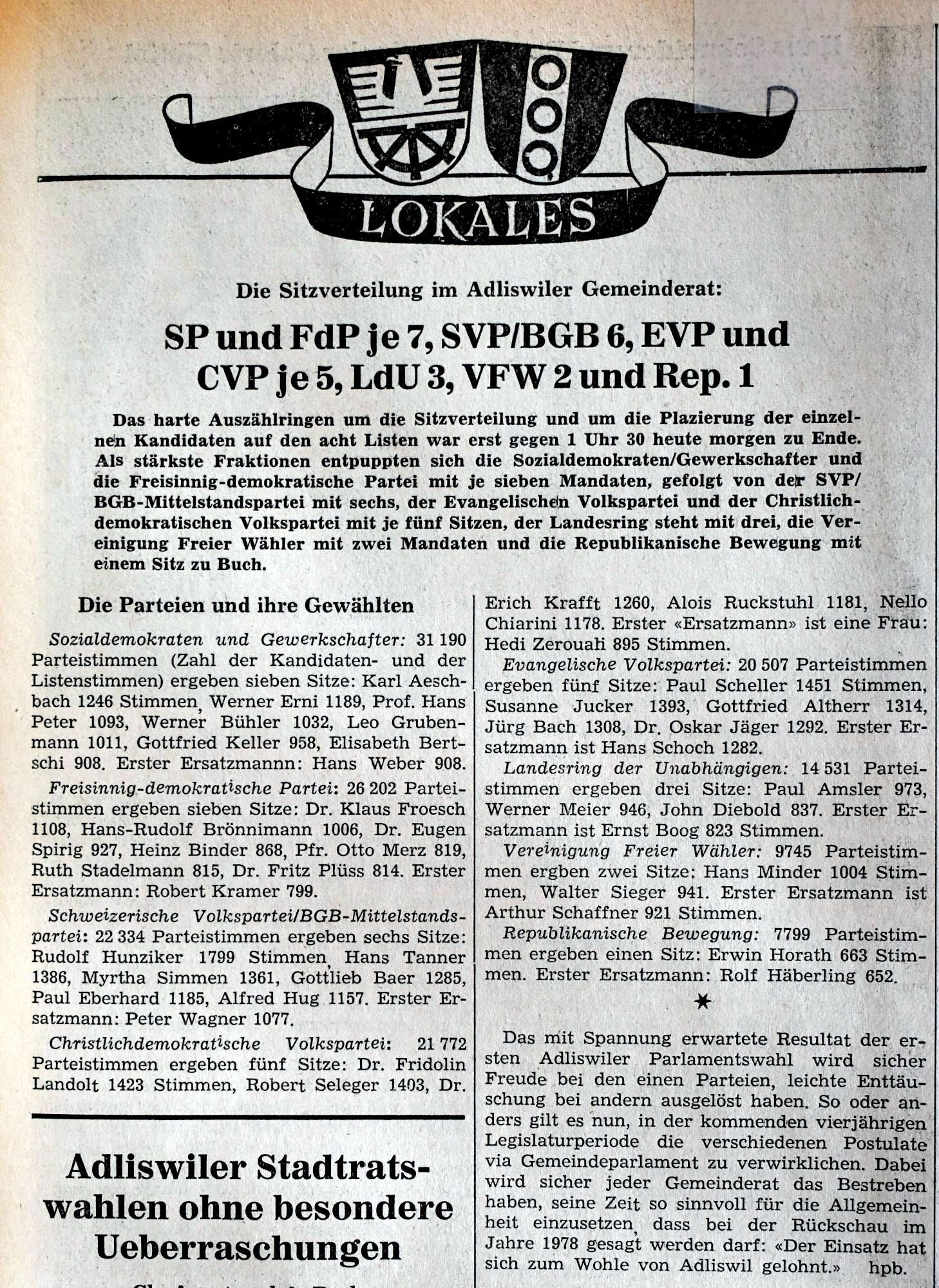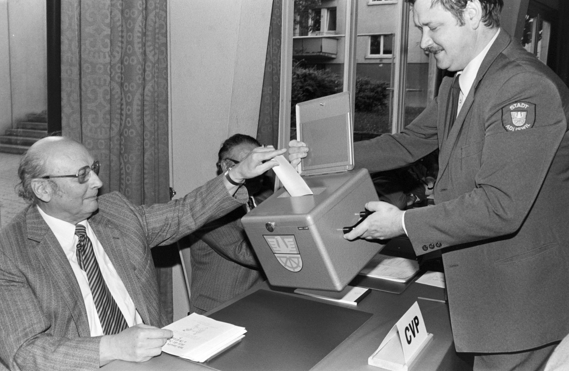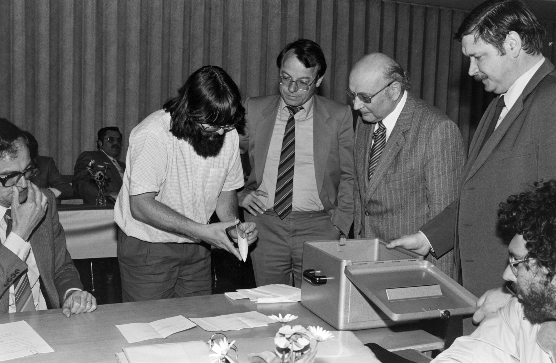 Wahl des Gemeinderatspräsidiums im Mai 1980 im Sunne-Saal