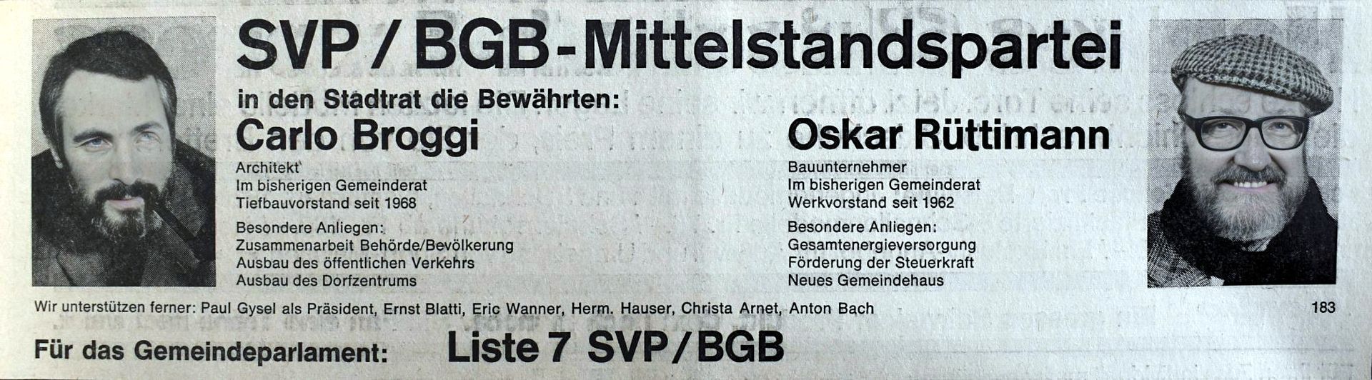 «Die Stadt von morgen» weiter zu SRF Beitrag der SRF Antenne vom 3. Februar 1965 (mit Gemeindepräsident Paul Gysel, EVP) [3:35 min.]