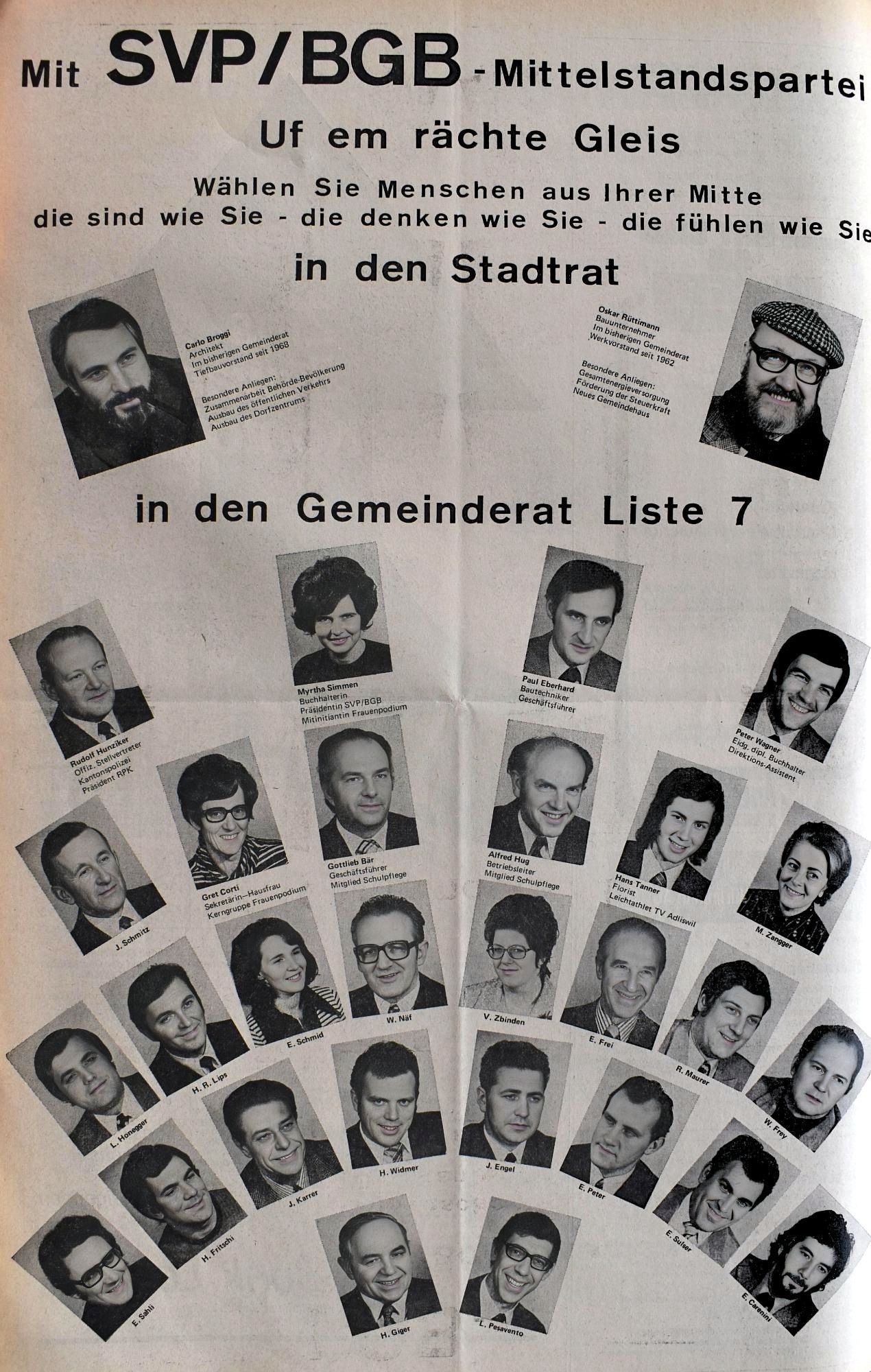 Die konstituierende Sitzung des Grossen Gemeinderates am 22. März 1974 im Sunne-Saal