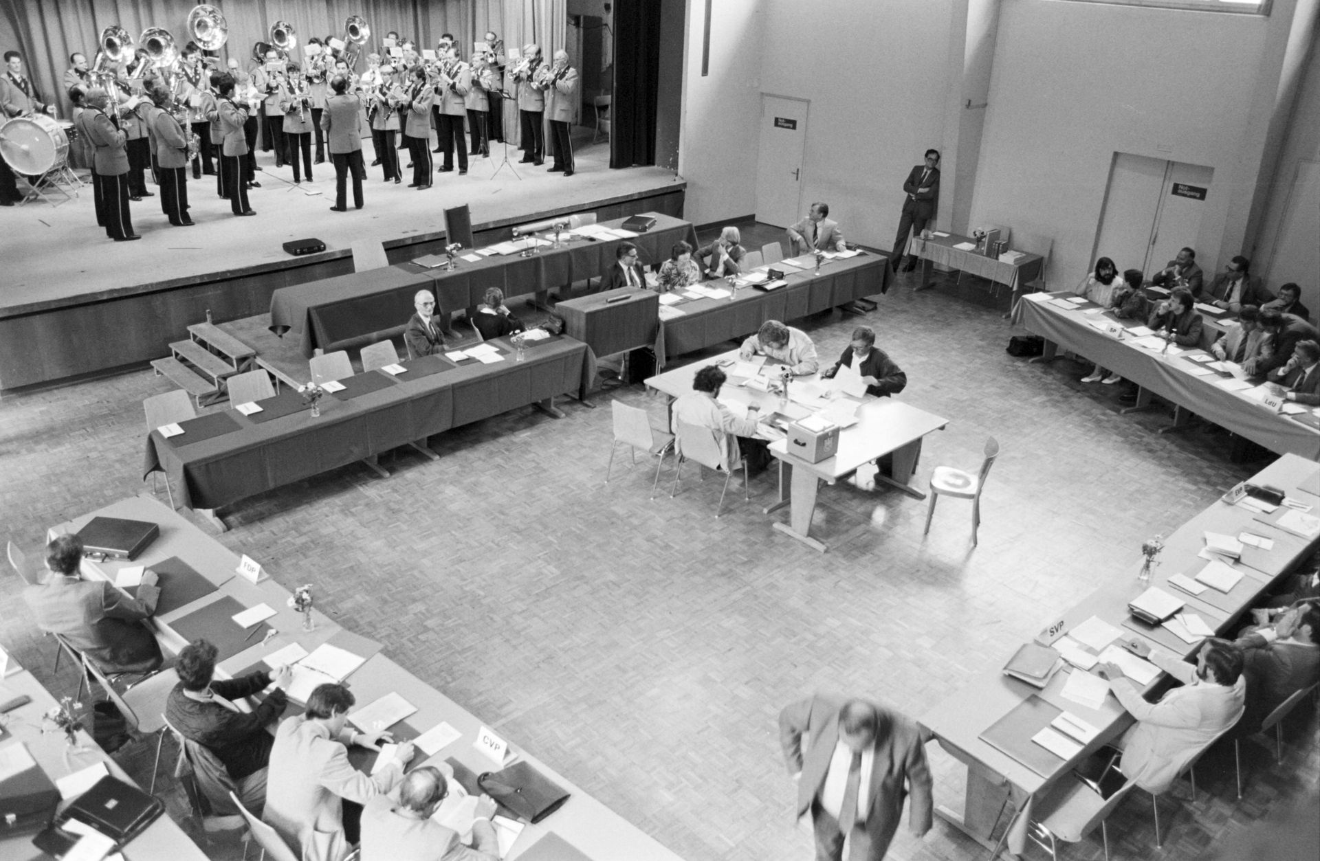 Wahl des Gemeinderatspräsidiums im Mai 1985 im Sunne-Saal