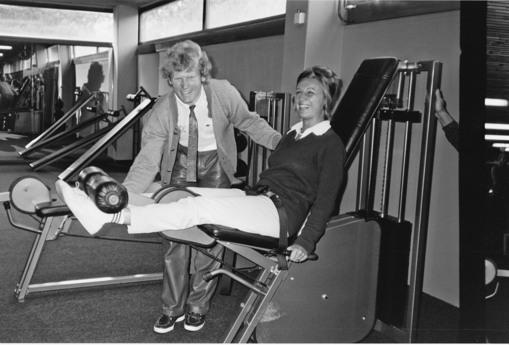 Eröffnung Pitsch Fitness-Center von Peter Müller mit Stadträtin Christa Arnet, 1982