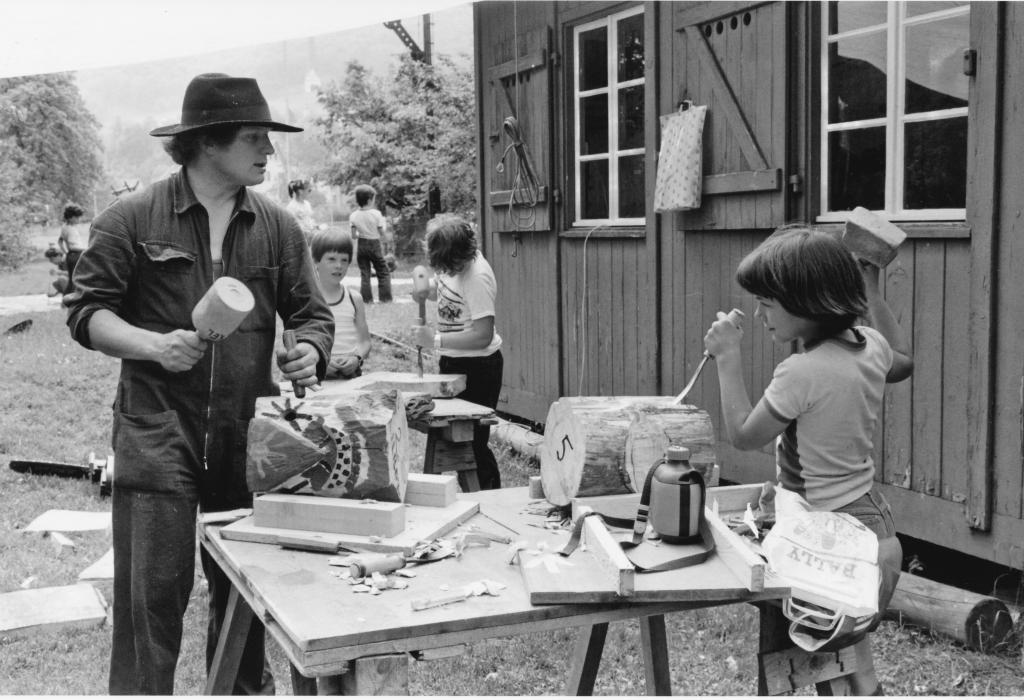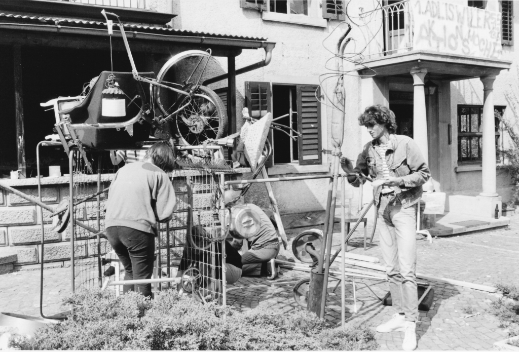 Veranstaltung der Kulturkommission auf dem Werkplatz von Piero Tedoldi (1945-2015) im Grüt,1985
