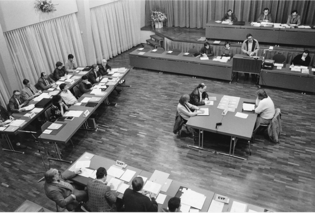 Sitzung des Grossen Gemeinderats im Sunne-Saal, 1985