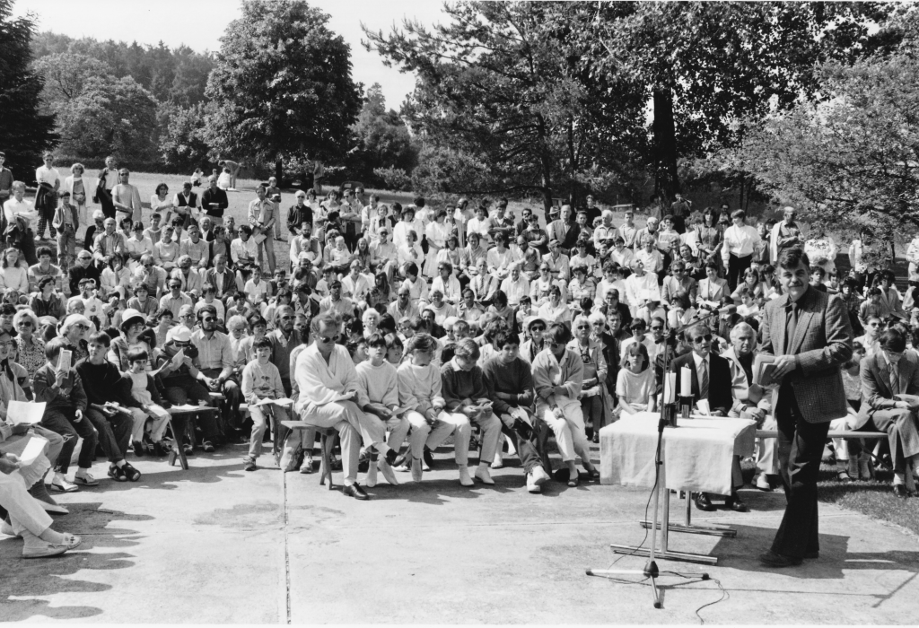 ökumenischer Gottesdienst auf der Wacht mit Pfarrer Hans-Rudolf Rüfenacht und Vikar Josef Kohler, 1985