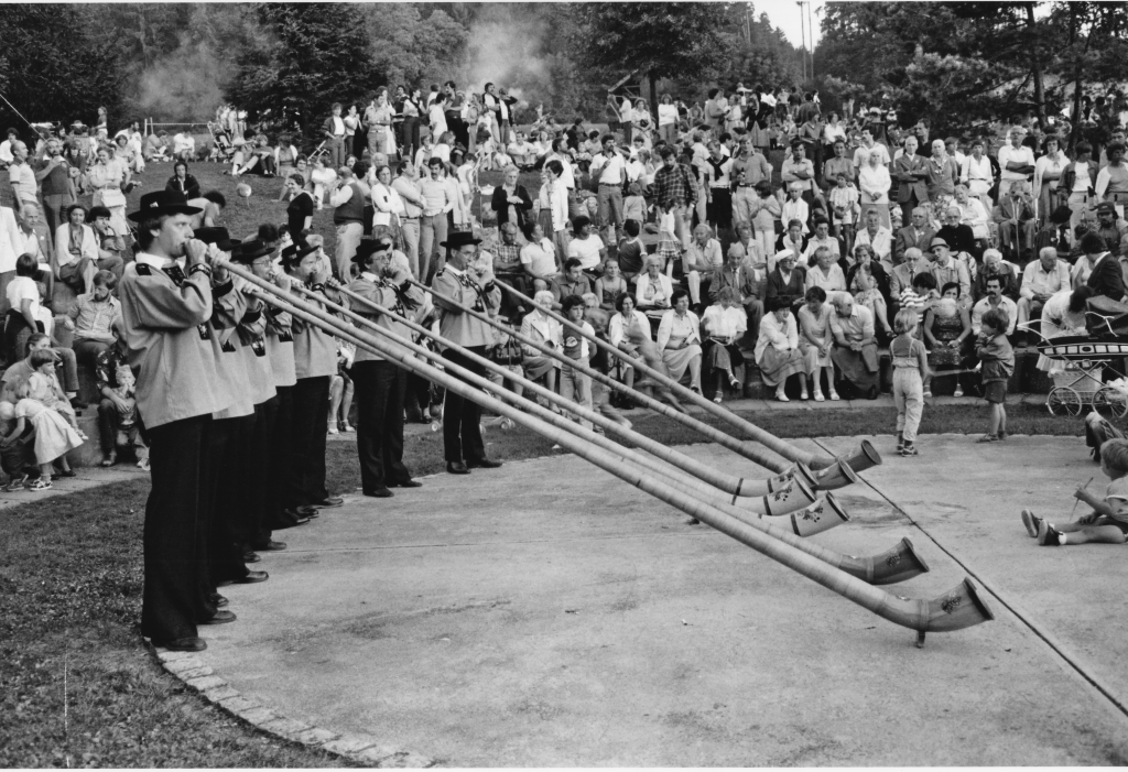 1. August-Feier auf der Wacht mit Alphornbläsern, 1982